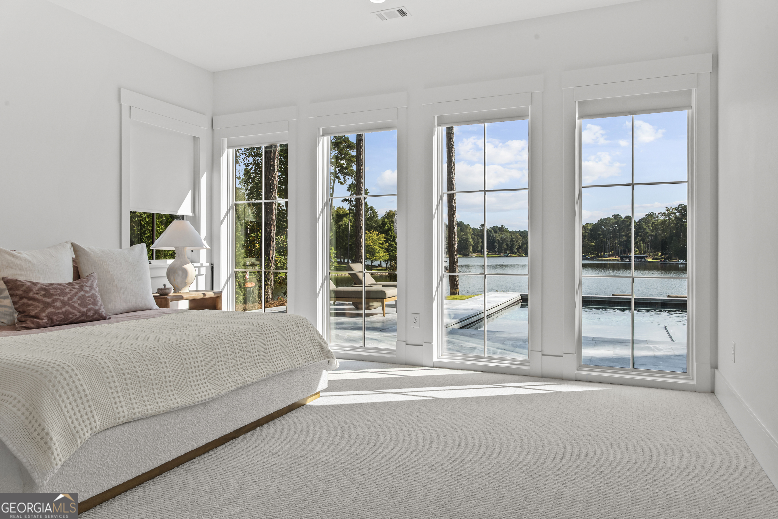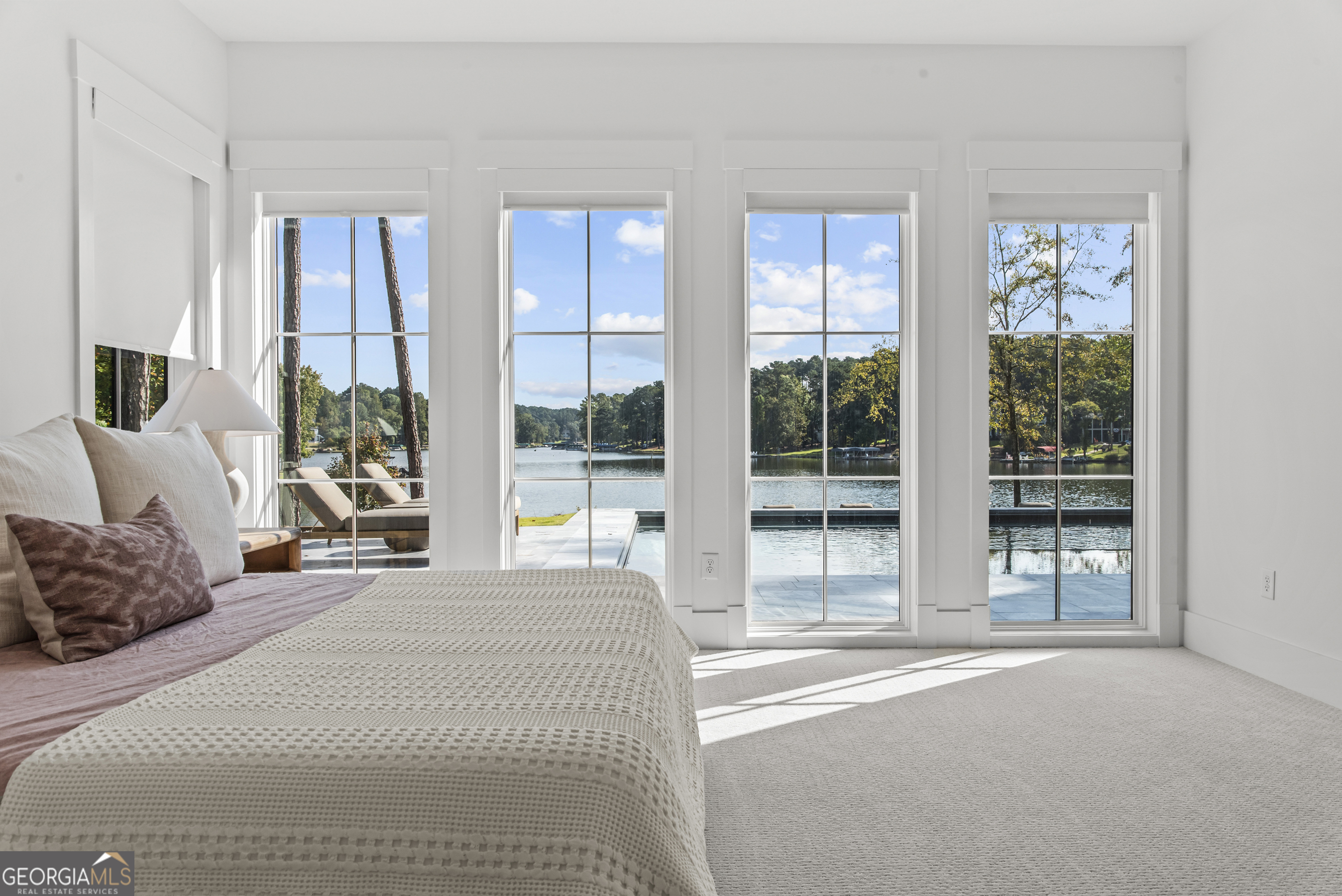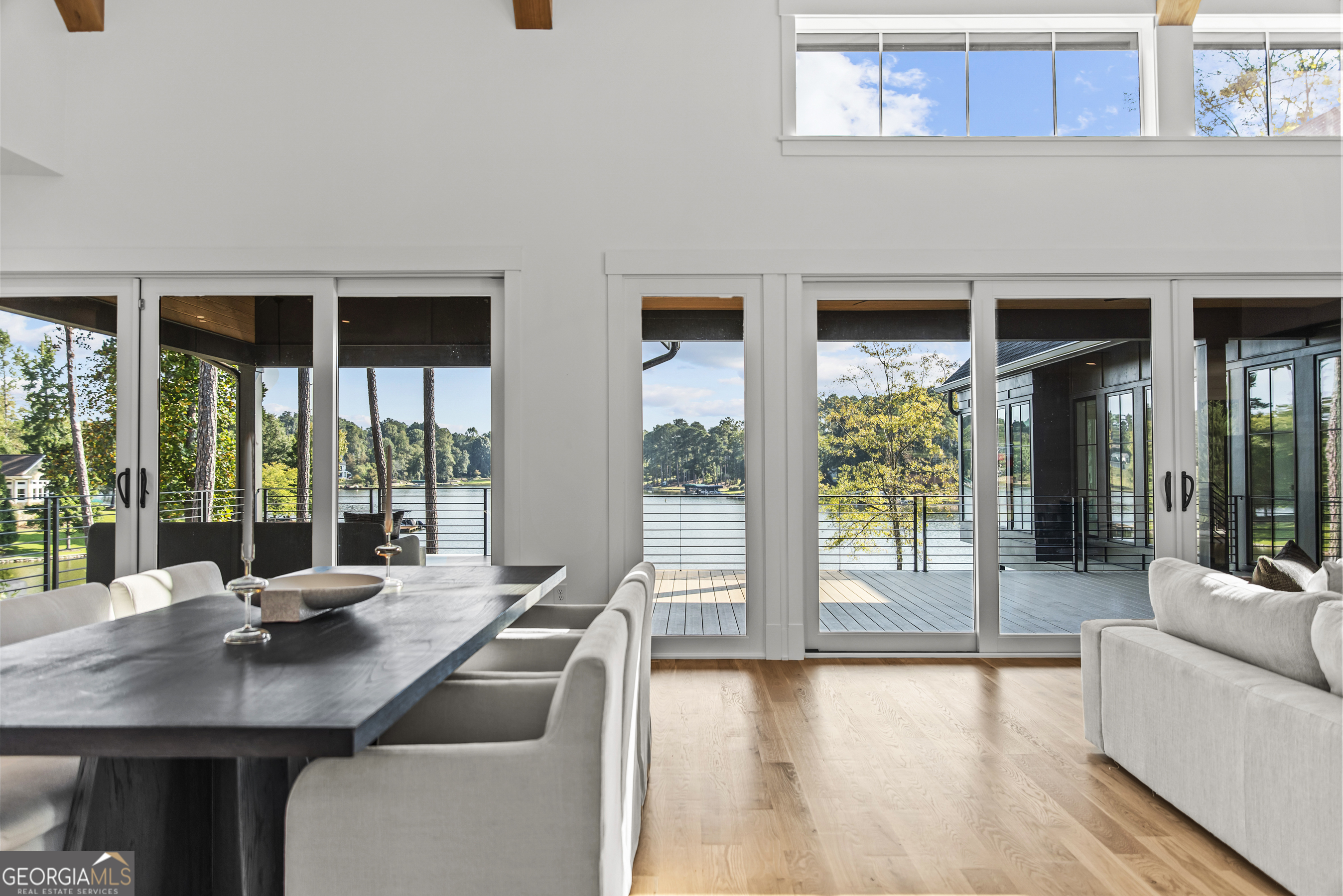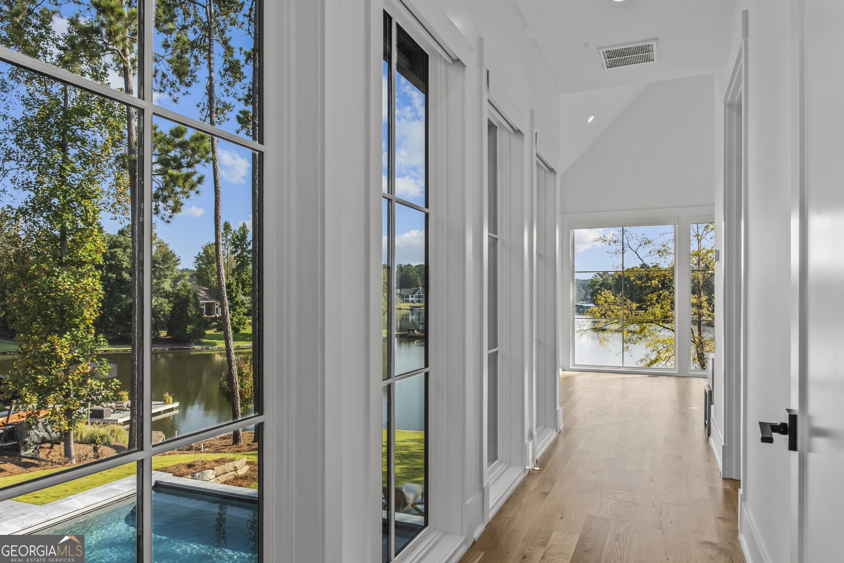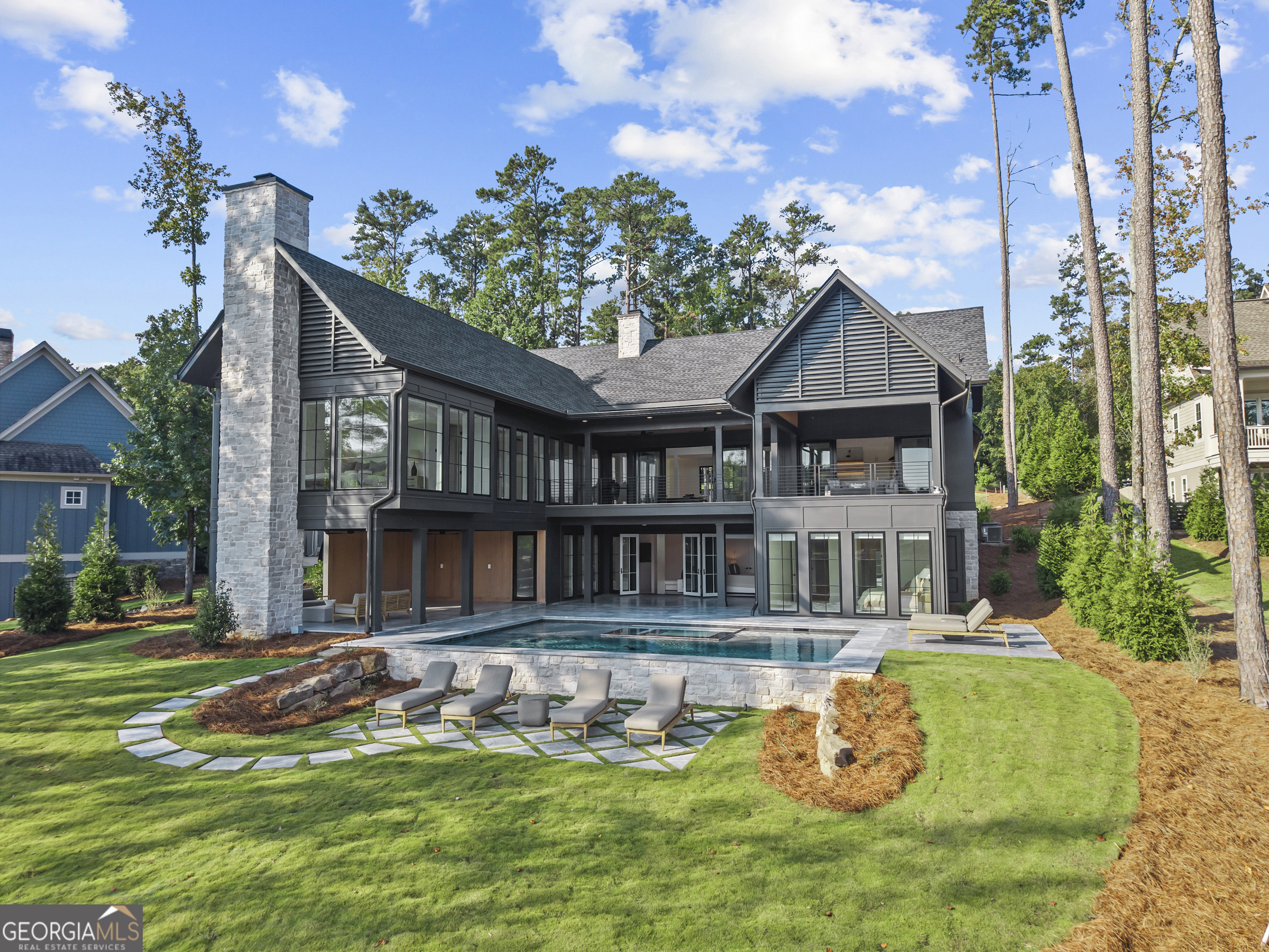 MODERN CALIFORNIA-INSPIRED LAKEFRONT RETREAT WITH POOL | Built 2025. A true one-of-a-kind masterpiece, this lakefront home showcases breathtaking water views from its lush, level lawn, overlooking an oversized heated saltwater pool with tanning ledge and spa. Designed with exceptional attention to detail, the home seamlessly blends architectural sophistication with effortless indoor-outdoor living. Upon entry, soaring cathedral ceilings set the tone, drawing you into expansive living spaces framed by wall-to-wall sliding glass doors. The living room, anchored by the limestone fireplace, flows seamlessly into the dining area and chef's kitchen-each space capturing uninterrupted, panoramic lake views. The kitchen is both stunning and highly functional, featuring quartzite countertops, a Thermador refrigerator and separate freezer, a Wolf range, and a beautifully appointed butler's pantry. An elegant wet bar with beverage refrigerator enhances the home's ability to entertain with ease. The primary suite is a private sanctuary, wrapped in glass and designed to capture breathtaking sunrise views over the water. The spa-inspired bath features a deep soaking tub, separate shower, and generous custom closets. Upstairs, two additional bedroom suites provide comfort and privacy, while the terrace level is designed for both relaxation and recreation. This level includes a spacious family room with wet bar, a flexible space ideal for a gym or golf simulator, and three additional guest suites. Located in Harbor Club, this home represents the pinnacle of modern lakefront living-offering refined design, exceptional amenities, and a rare connection to the water. The seller is including a luxury membership to one of Lake Oconee's most prestigious hotels, providing access to award-winning spa, dining, and amenities. Max Dock being installed early Spring. Only a five-minute boat ride to Reynolds Lake Club and The Ritz-Carlton, providing effortless access to some of the lake's most sought-after destinations.