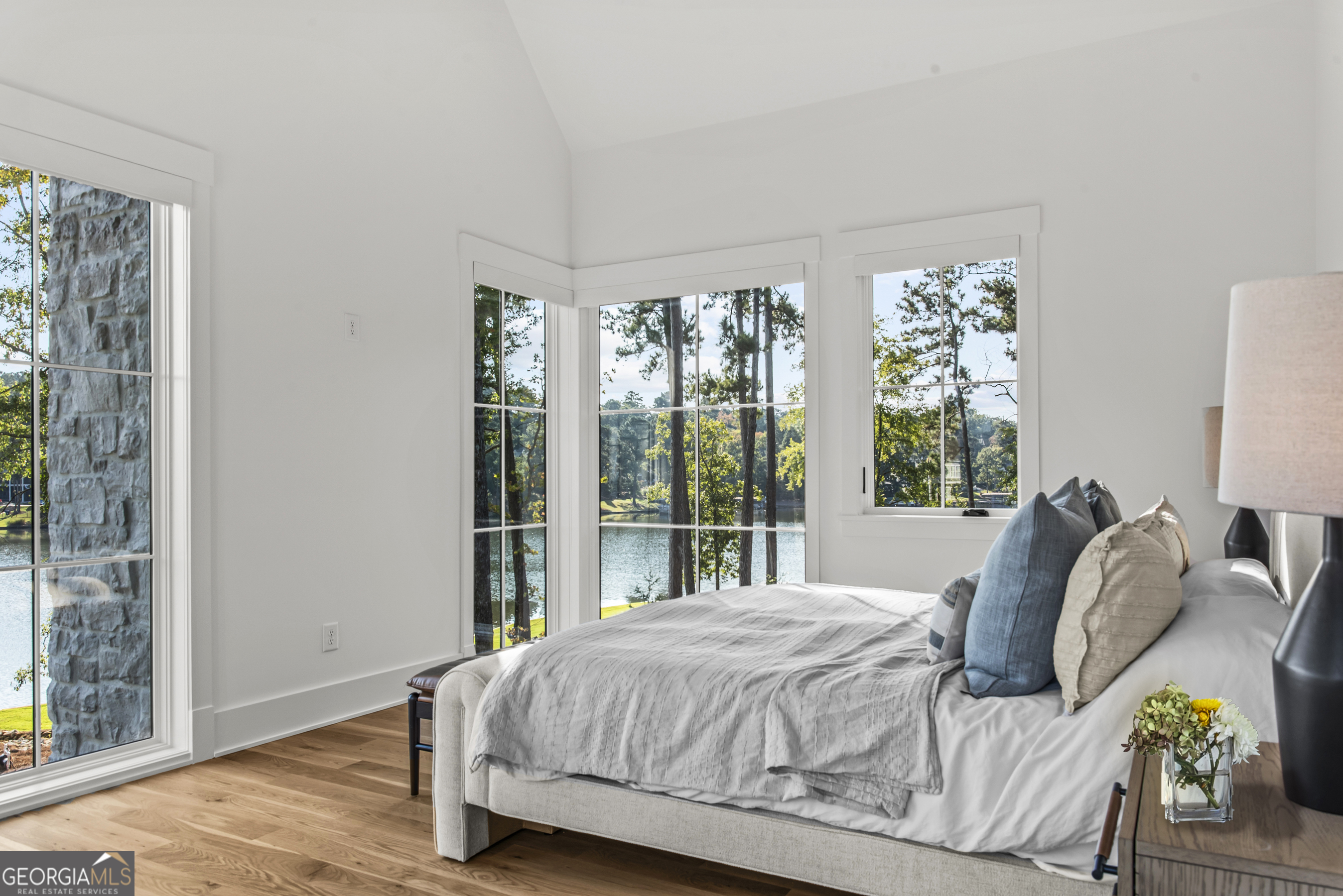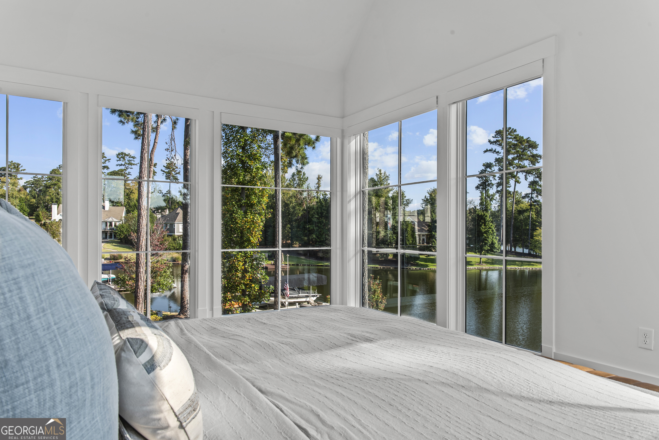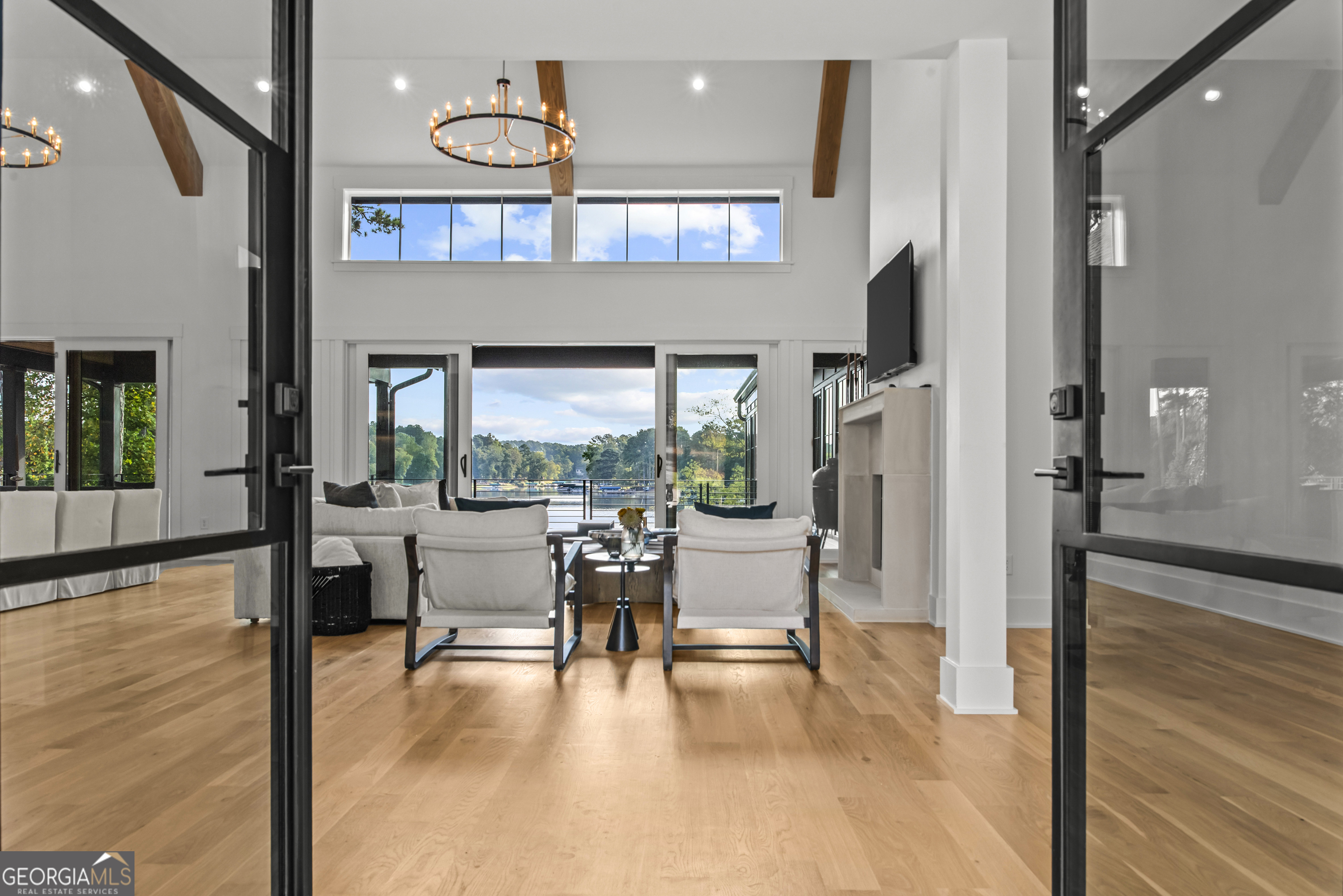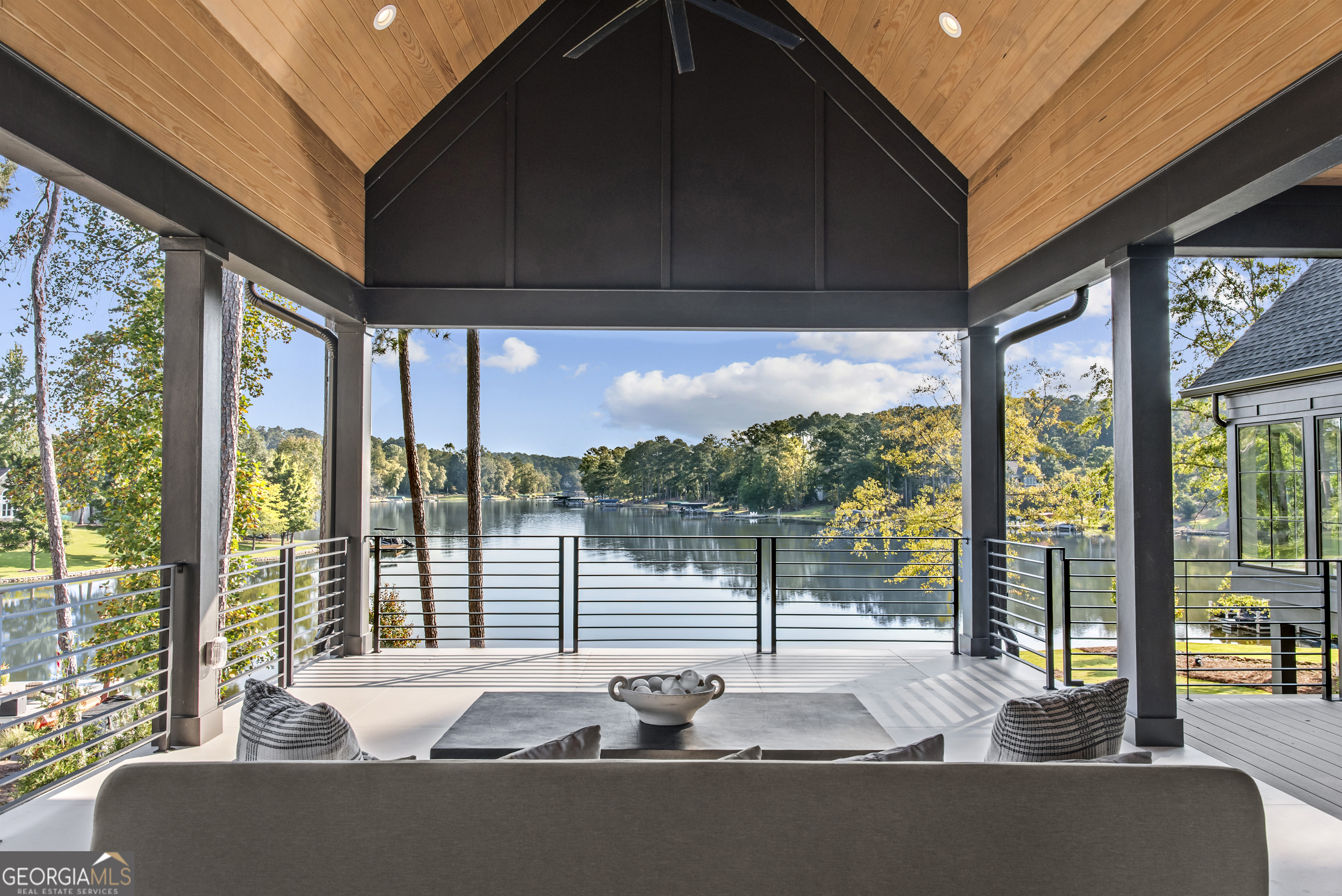 MODERN CALIFORNIA-INSPIRED LAKEFRONT RETREAT WITH POOL | Built 2025. A true one-of-a-kind masterpiece, this lakefront home showcases breathtaking water views from its lush, level lawn, overlooking an oversized heated saltwater pool with tanning ledge and spa. Designed with exceptional attention to detail, the home seamlessly blends architectural sophistication with effortless indoor-outdoor living. Upon entry, soaring cathedral ceilings set the tone, drawing you into expansive living spaces framed by wall-to-wall sliding glass doors. The living room, anchored by the limestone fireplace, flows seamlessly into the dining area and chef's kitchen-each space capturing uninterrupted, panoramic lake views. The kitchen is both stunning and highly functional, featuring quartzite countertops, a Thermador refrigerator and separate freezer, a Wolf range, and a beautifully appointed butler's pantry. An elegant wet bar with beverage refrigerator enhances the home's ability to entertain with ease. The primary suite is a private sanctuary, wrapped in glass and designed to capture breathtaking sunrise views over the water. The spa-inspired bath features a deep soaking tub, separate shower, and generous custom closets. Upstairs, two additional bedroom suites provide comfort and privacy, while the terrace level is designed for both relaxation and recreation. This level includes a spacious family room with wet bar, a flexible space ideal for a gym or golf simulator, and three additional guest suites. Located in Harbor Club, this home represents the pinnacle of modern lakefront living-offering refined design, exceptional amenities, and a rare connection to the water. The seller is including a luxury membership to one of Lake Oconee's most prestigious hotels, providing access to award-winning spa, dining, and amenities. Max Dock being installed early Spring. Only a five-minute boat ride to Reynolds Lake Club and The Ritz-Carlton, providing effortless access to some of the lake's most sought-after destinations.