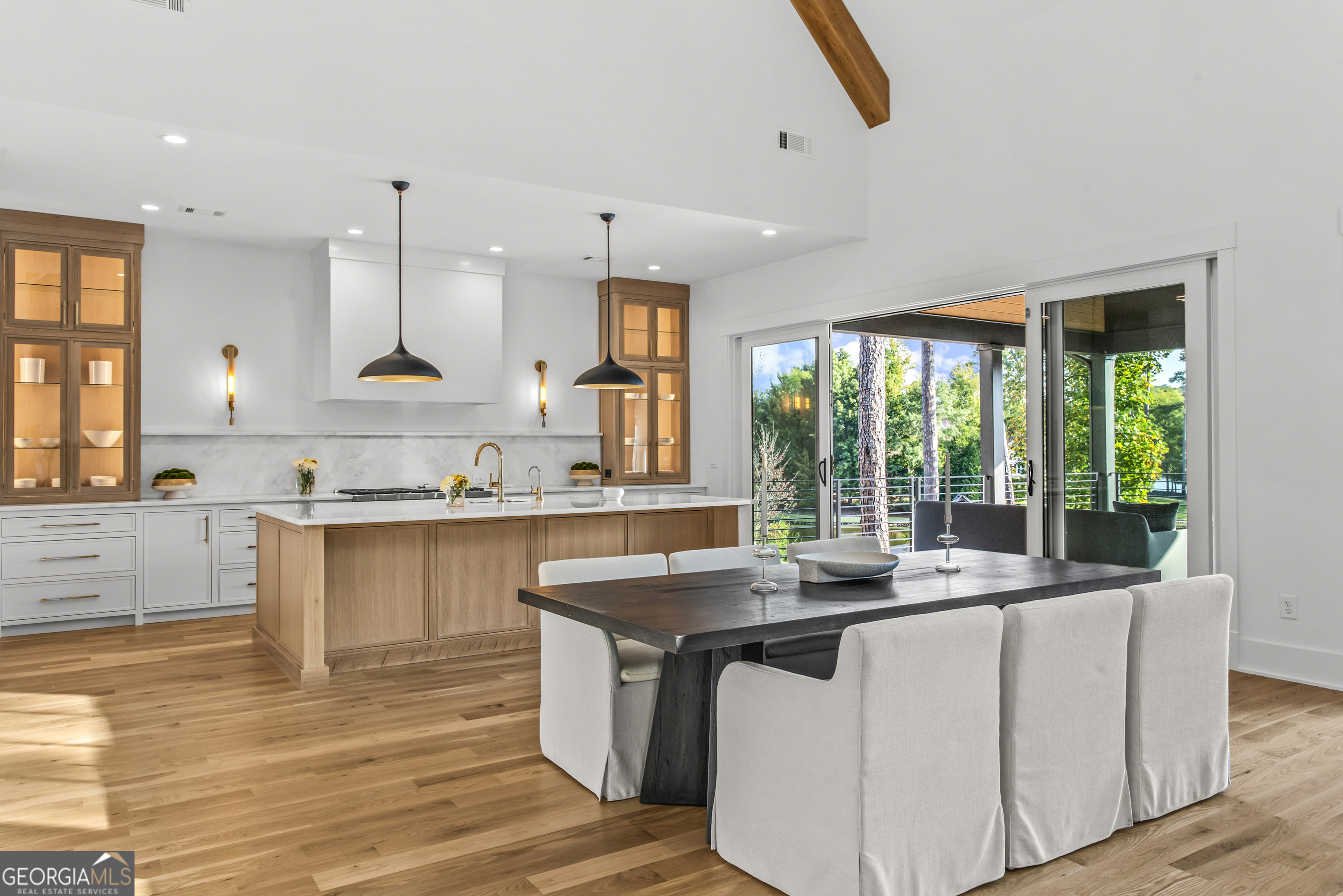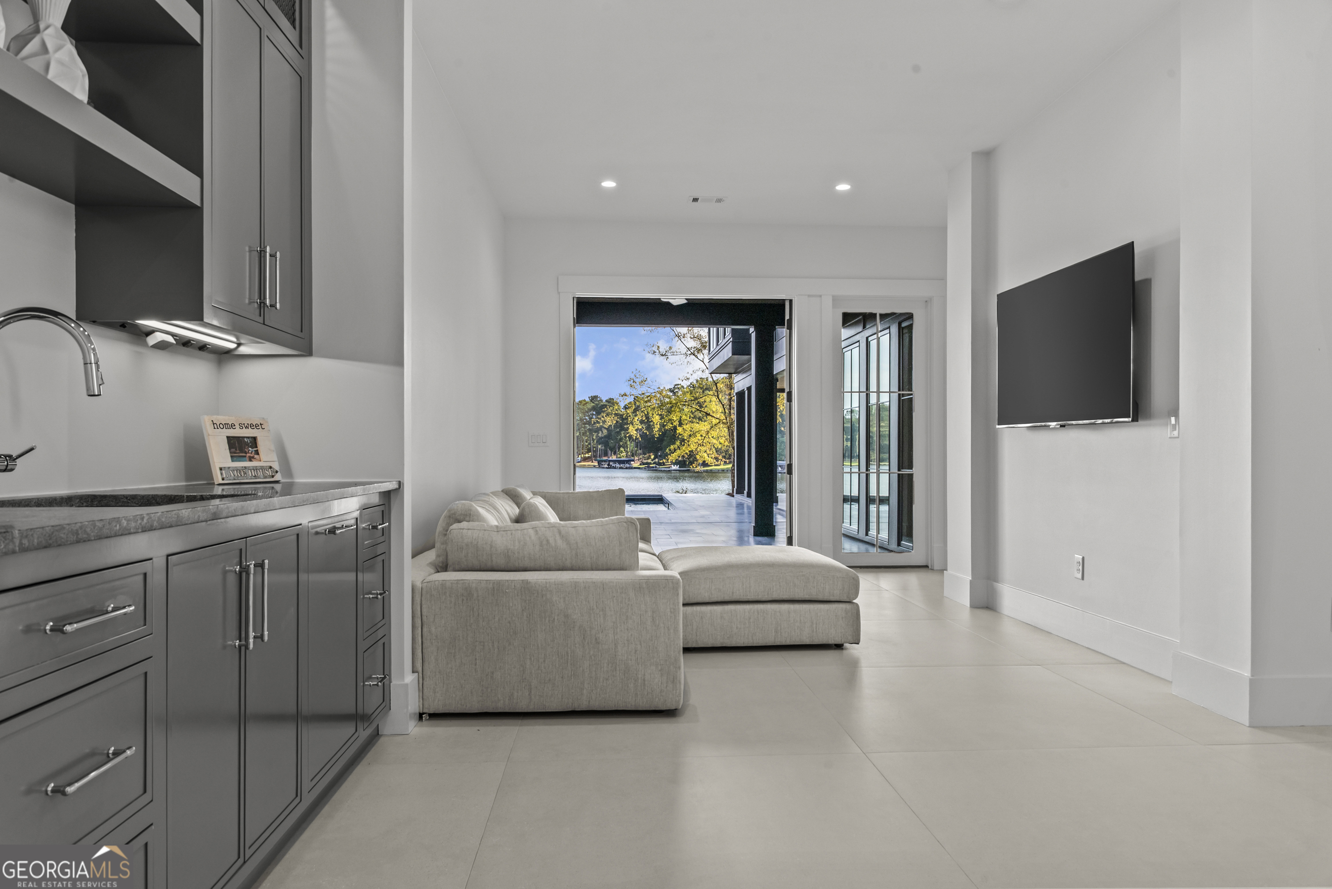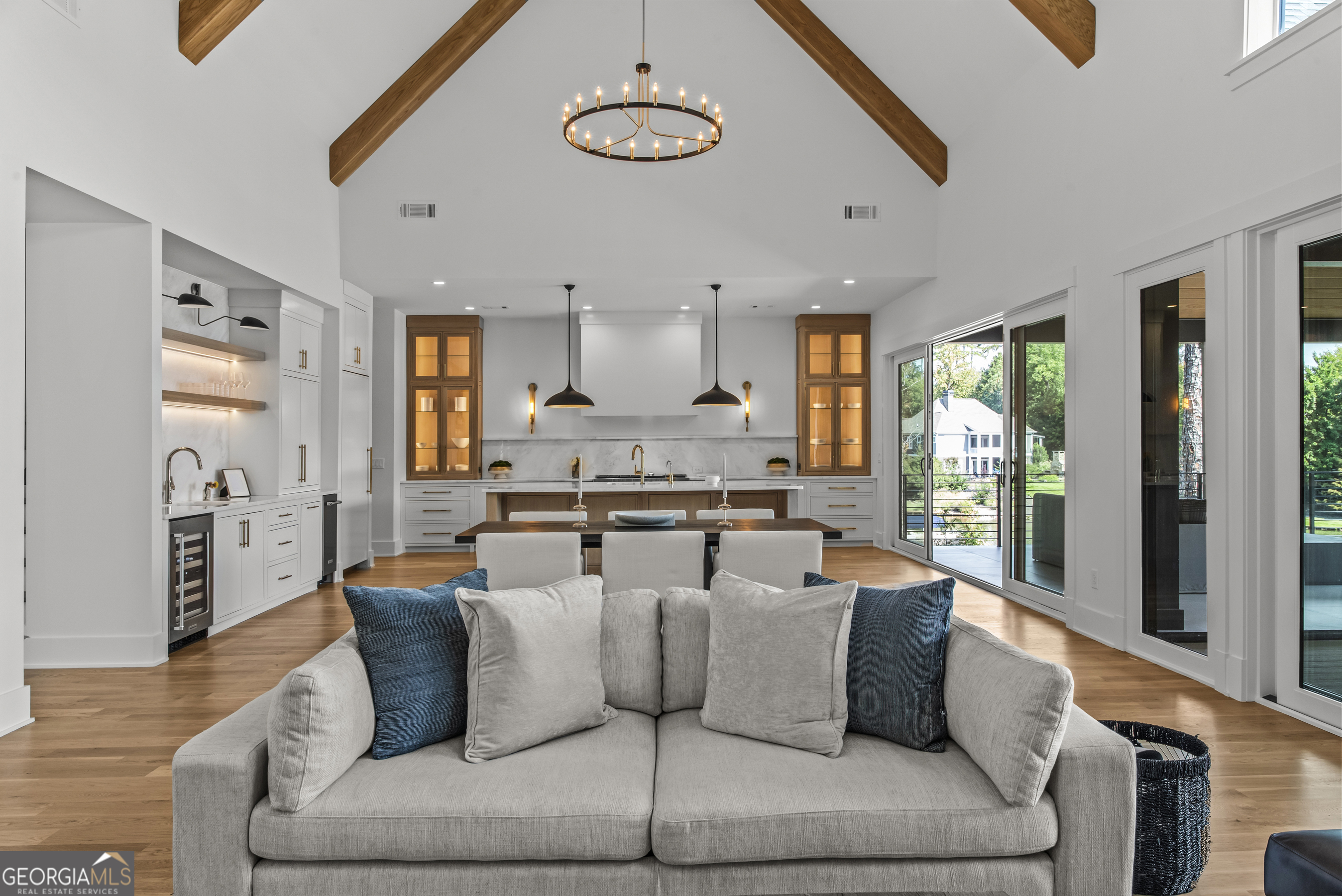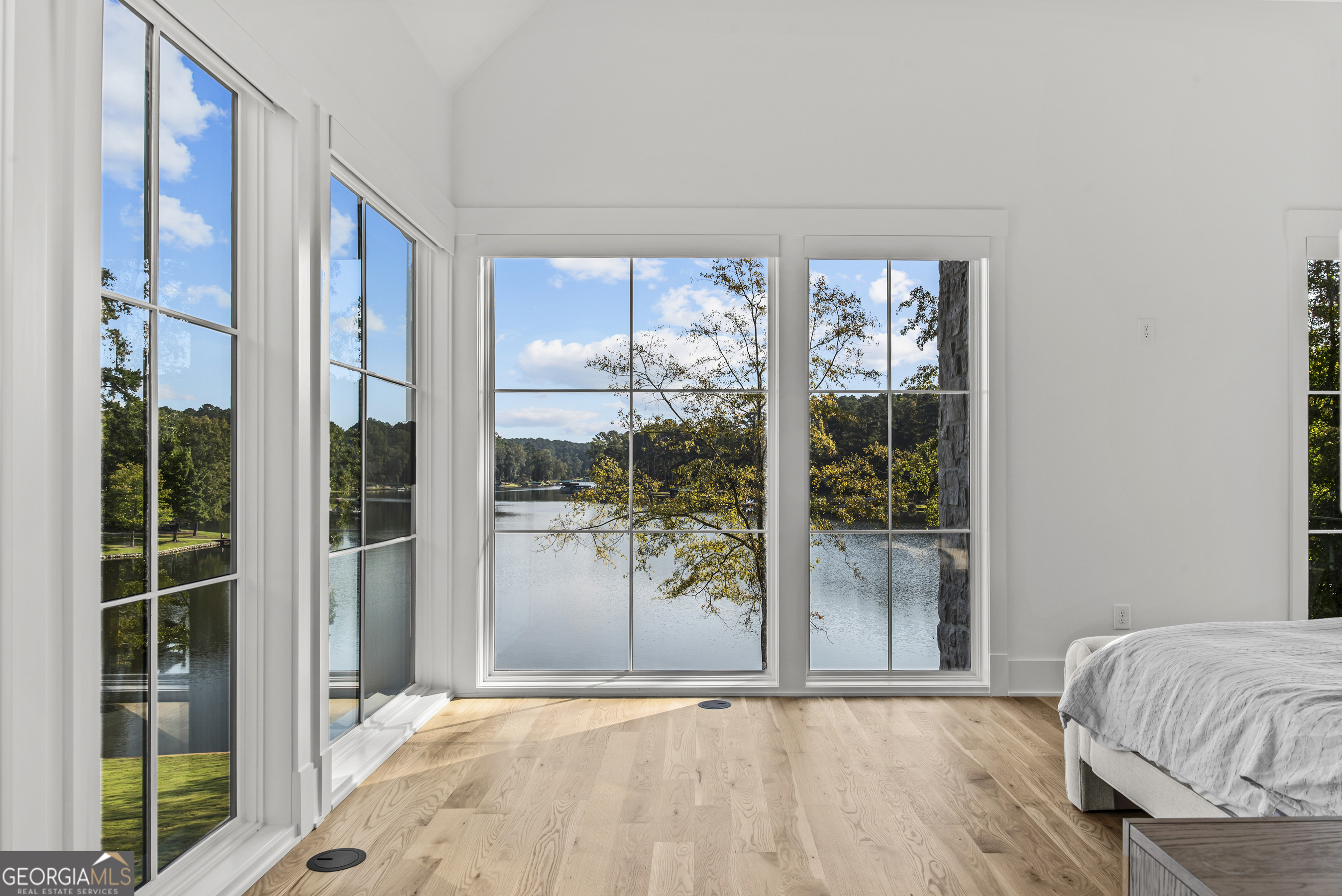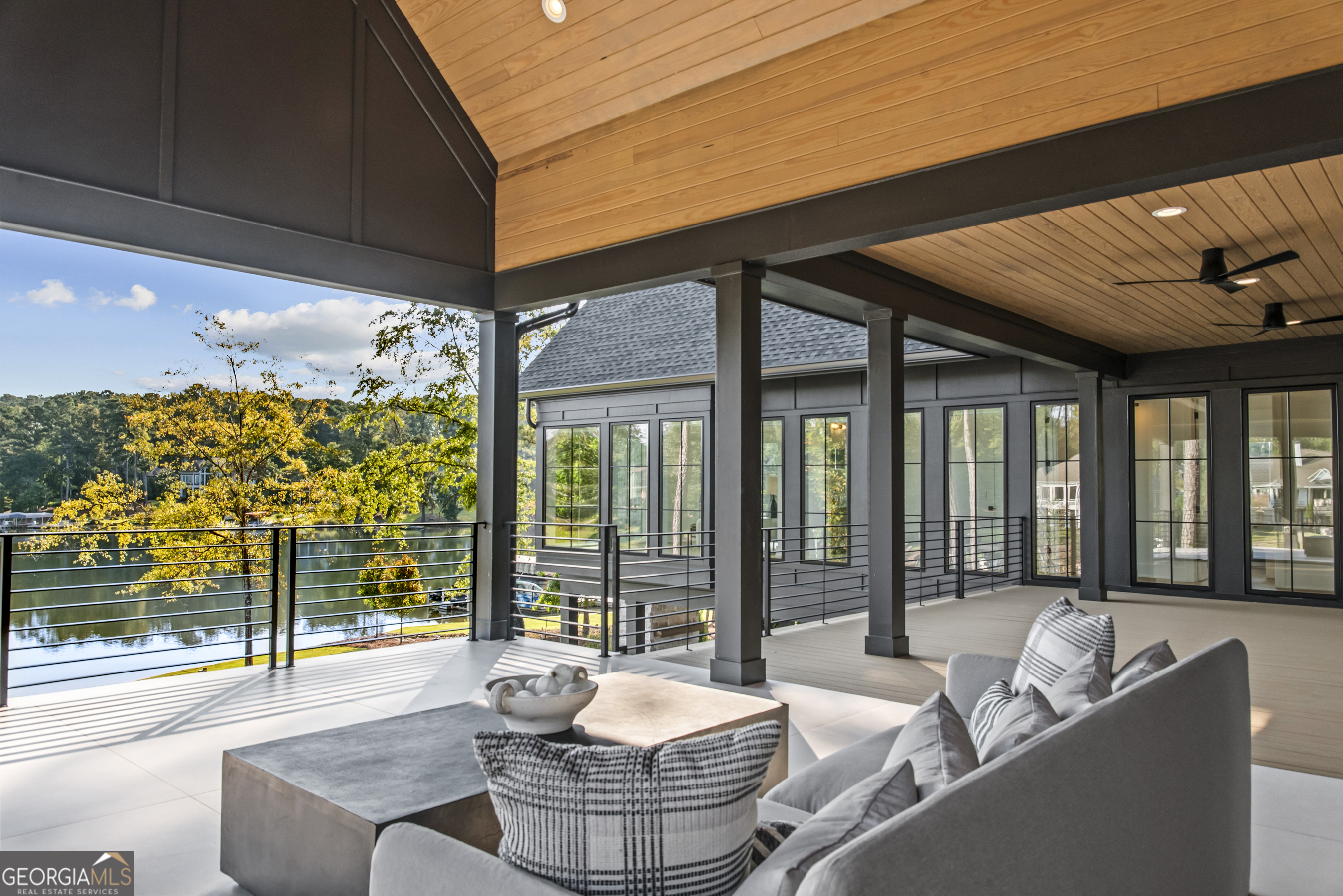 MODERN CALIFORNIA-INSPIRED LAKEFRONT RETREAT WITH POOL | Built 2025. A true one-of-a-kind masterpiece, this lakefront home showcases breathtaking water views from its lush, level lawn, overlooking an oversized heated saltwater pool with tanning ledge and spa. Designed with exceptional attention to detail, the home seamlessly blends architectural sophistication with effortless indoor-outdoor living. Upon entry, soaring cathedral ceilings set the tone, drawing you into expansive living spaces framed by wall-to-wall sliding glass doors. The living room, anchored by the limestone fireplace, flows seamlessly into the dining area and chef's kitchen-each space capturing uninterrupted, panoramic lake views. The kitchen is both stunning and highly functional, featuring quartzite countertops, a Thermador refrigerator and separate freezer, a Wolf range, and a beautifully appointed butler's pantry. An elegant wet bar with beverage refrigerator enhances the home's ability to entertain with ease. The primary suite is a private sanctuary, wrapped in glass and designed to capture breathtaking sunrise views over the water. The spa-inspired bath features a deep soaking tub, separate shower, and generous custom closets. Upstairs, two additional bedroom suites provide comfort and privacy, while the terrace level is designed for both relaxation and recreation. This level includes a spacious family room with wet bar, a flexible space ideal for a gym or golf simulator, and three additional guest suites. Located in Harbor Club, this home represents the pinnacle of modern lakefront living-offering refined design, exceptional amenities, and a rare connection to the water. The seller is including a luxury membership to one of Lake Oconee's most prestigious hotels, providing access to award-winning spa, dining, and amenities. Max Dock being installed early Spring. Only a five-minute boat ride to Reynolds Lake Club and The Ritz-Carlton, providing effortless access to some of the lake's most sought-after destinations.