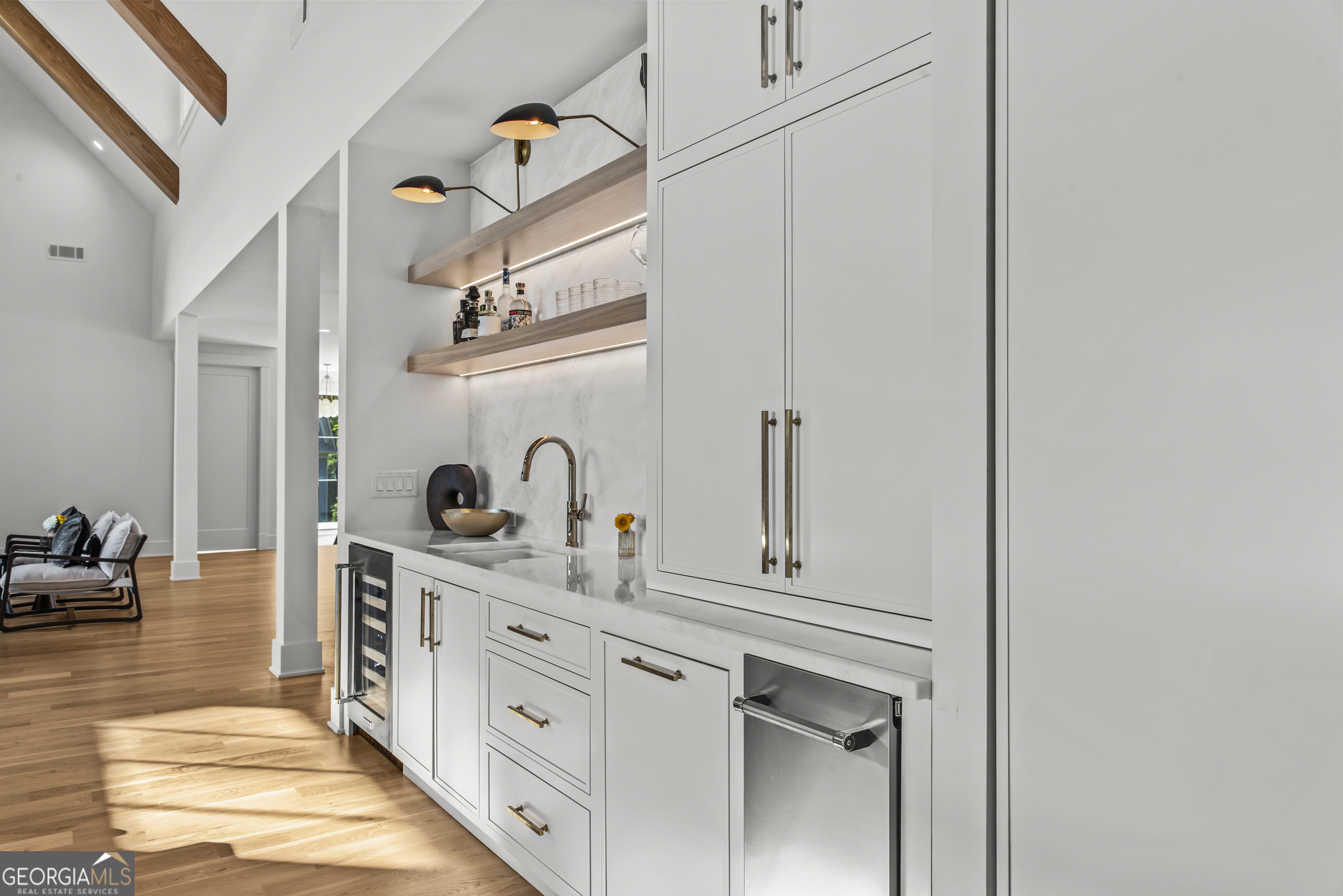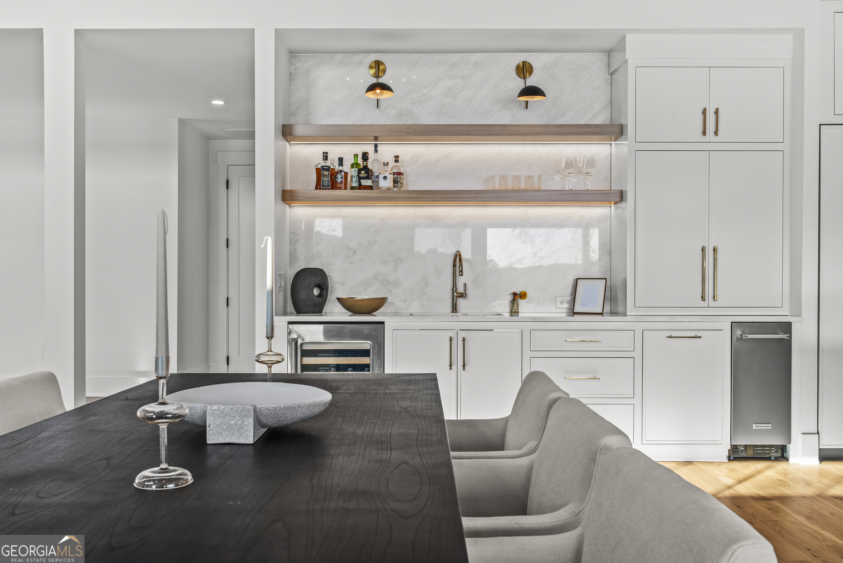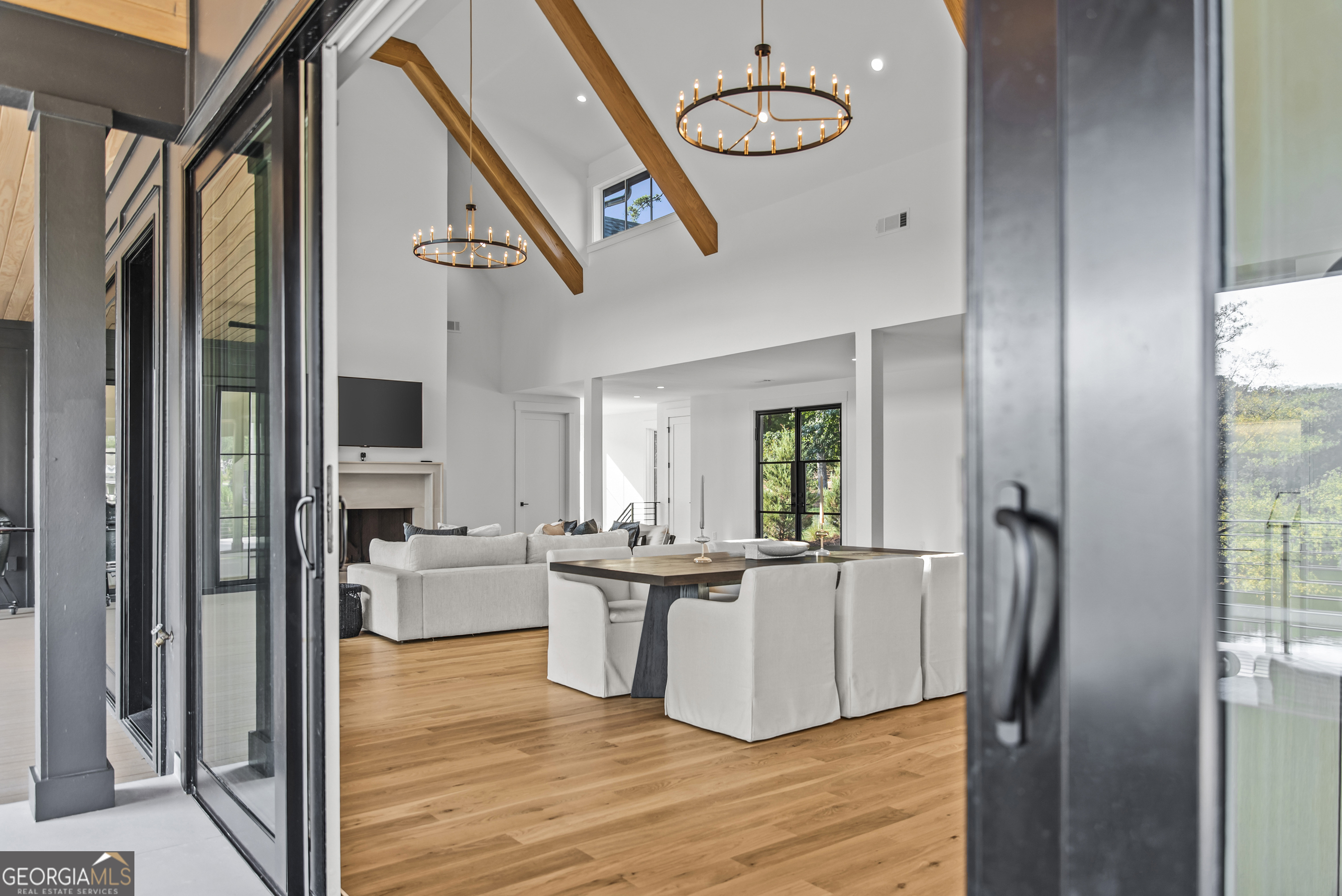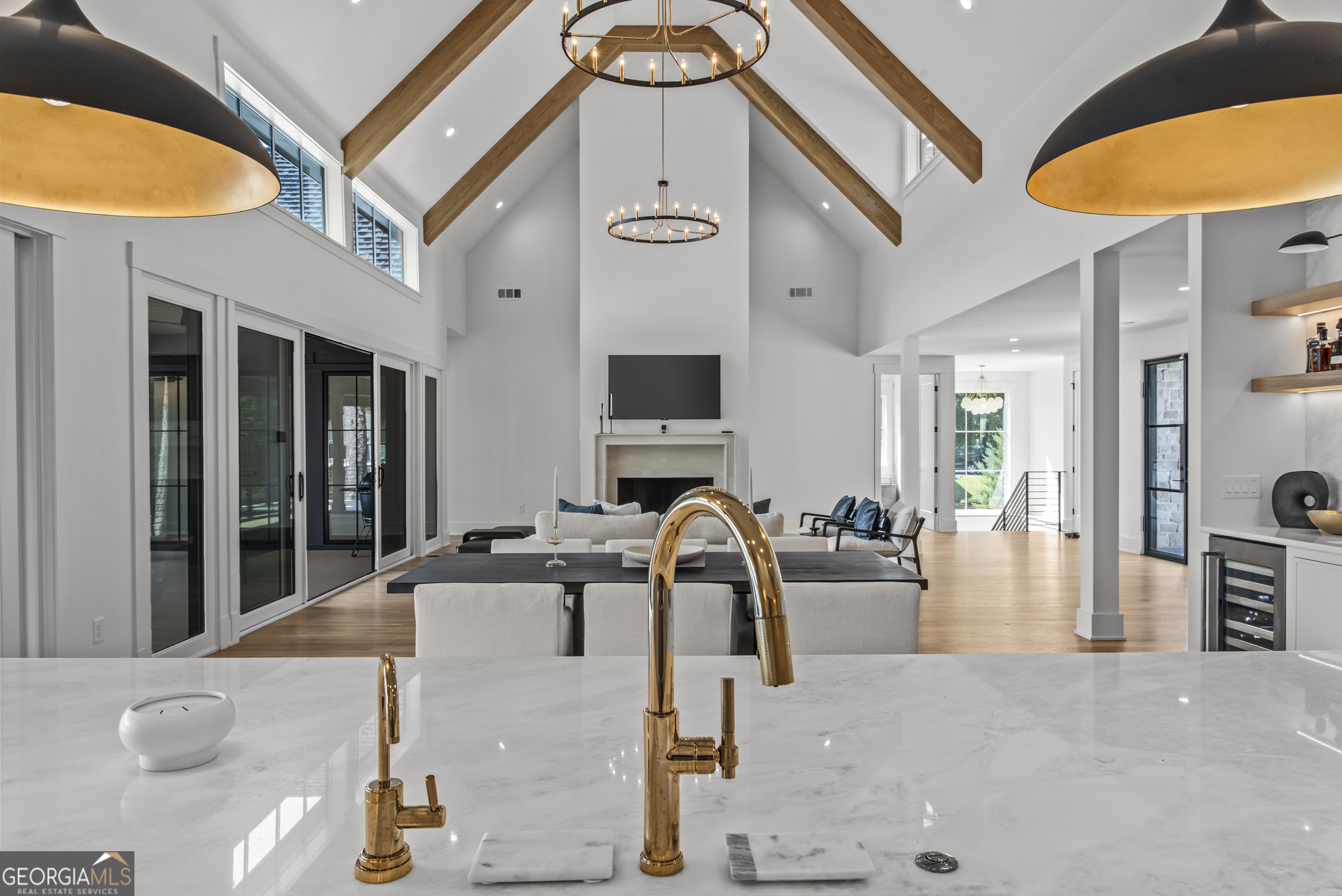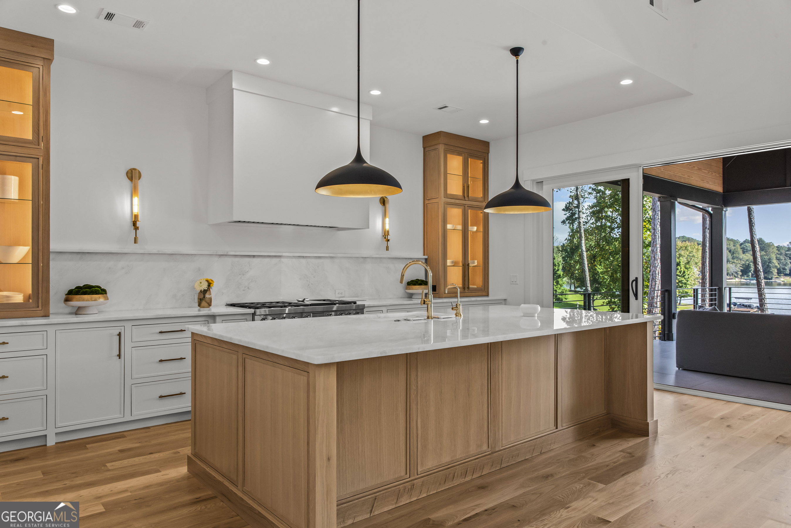 MODERN CALIFORNIA-INSPIRED LAKEFRONT RETREAT WITH POOL | Built 2025. A true one-of-a-kind masterpiece, this lakefront home showcases breathtaking water views from its lush, level lawn, overlooking an oversized heated saltwater pool with tanning ledge and spa. Designed with exceptional attention to detail, the home seamlessly blends architectural sophistication with effortless indoor-outdoor living. Upon entry, soaring cathedral ceilings set the tone, drawing you into expansive living spaces framed by wall-to-wall sliding glass doors. The living room, anchored by the limestone fireplace, flows seamlessly into the dining area and chef's kitchen-each space capturing uninterrupted, panoramic lake views. The kitchen is both stunning and highly functional, featuring quartzite countertops, a Thermador refrigerator and separate freezer, a Wolf range, and a beautifully appointed butler's pantry. An elegant wet bar with beverage refrigerator enhances the home's ability to entertain with ease. The primary suite is a private sanctuary, wrapped in glass and designed to capture breathtaking sunrise views over the water. The spa-inspired bath features a deep soaking tub, separate shower, and generous custom closets. Upstairs, two additional bedroom suites provide comfort and privacy, while the terrace level is designed for both relaxation and recreation. This level includes a spacious family room with wet bar, a flexible space ideal for a gym or golf simulator, and three additional guest suites. Located in Harbor Club, this home represents the pinnacle of modern lakefront living-offering refined design, exceptional amenities, and a rare connection to the water. The seller is including a luxury membership to one of Lake Oconee's most prestigious hotels, providing access to award-winning spa, dining, and amenities. Max Dock being installed early Spring. Only a five-minute boat ride to Reynolds Lake Club and The Ritz-Carlton, providing effortless access to some of the lake's most sought-after destinations.
